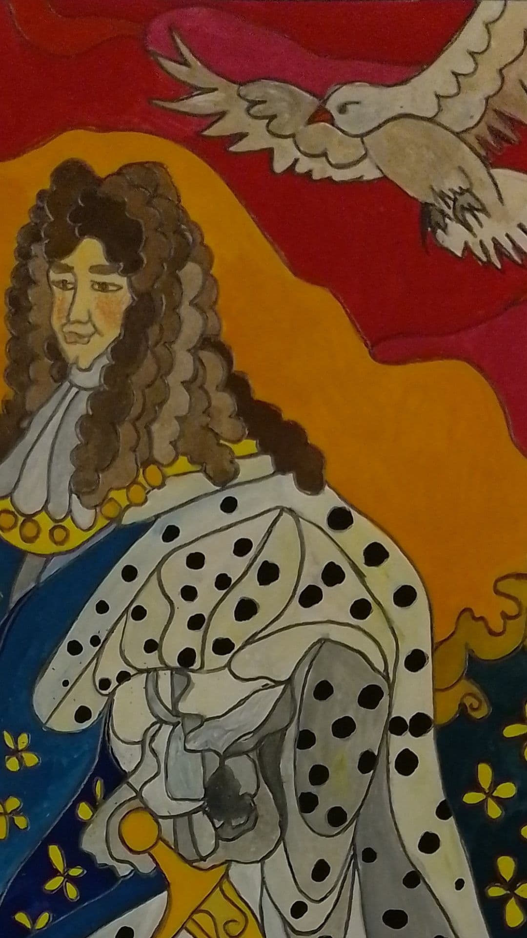 Normalde Louis tablosunun illüstrasyonunu çizerken tabloya aslında olmayan bir detay eklemek istedim. O da Louis'in sağ üst kısmında uçan bir kuştu. Ben bu illüstrasyonu çizerken Louis'in bir kuş hayranı olduğunu bilmiyordum. Onun egzotik kuşlar beslediği bir özel bahçesi bile varmış.