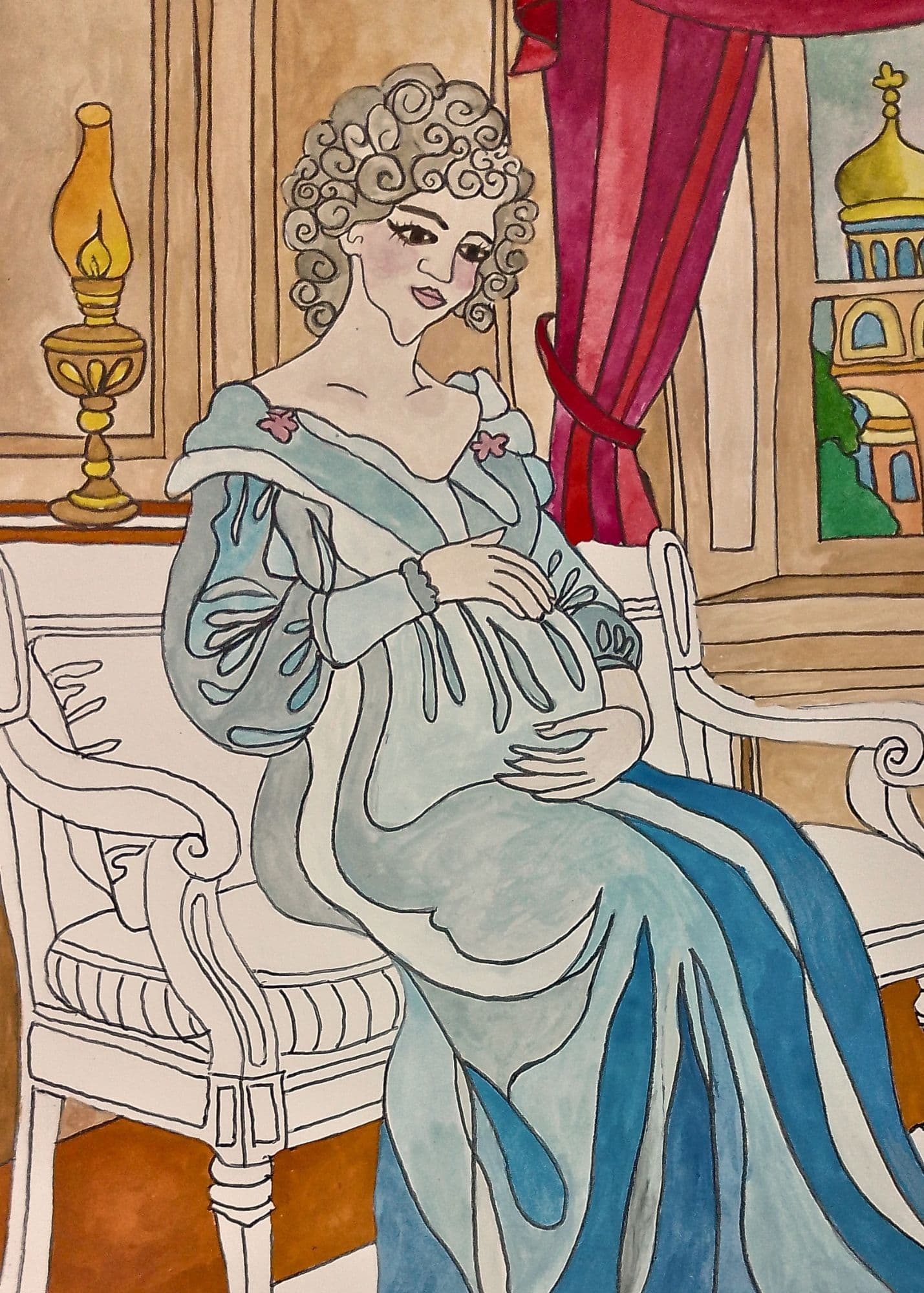 Bu illüstrasyon, Korkunç İvan'ın gelini Yelena ile ilgilidir. Yelena, Kremlin Sarayı'ndaki odasında oturuyordu. Aniden, Korkunç İvan odaya girdi ve onu ince bir gecelikle gördü. Hamile bir kadındı ve çok yorgundu. O odaya girmeden önce kat kat, resmi bir saray elbisesi giyerek Korkunç İvan ile bir görüşmeye hazırlanmamıştı. Korkunç İvan delirdi ve ona saldırdı. Maalesef karnındaki bebek bu şiddet yüzünden öldü. Yelena'yı kurtarmak için zamanı geri alamayız ama günlük hayatımızı "komşunu kendin gibi sev" eğitimine göre analiz edebiliriz.